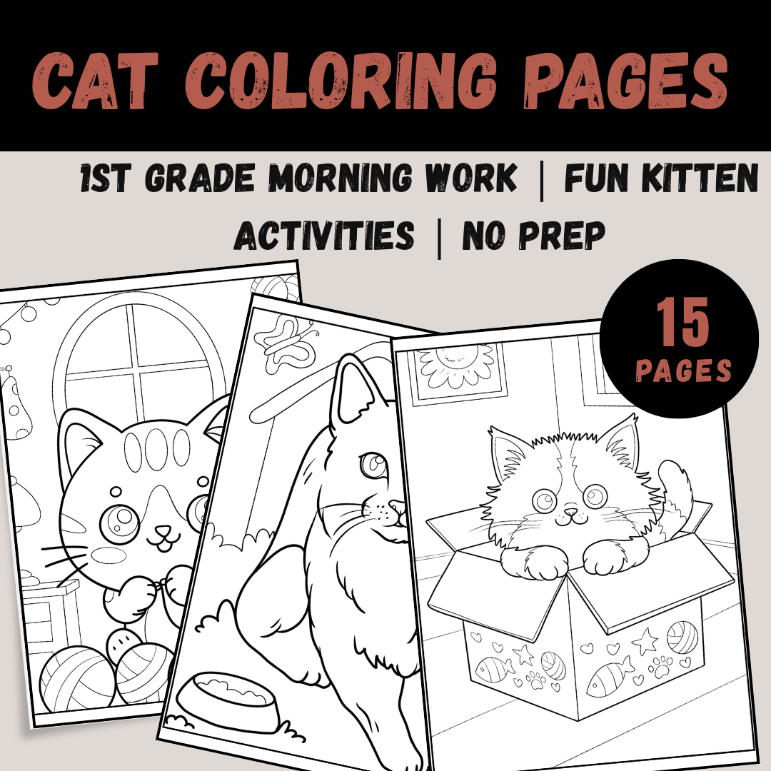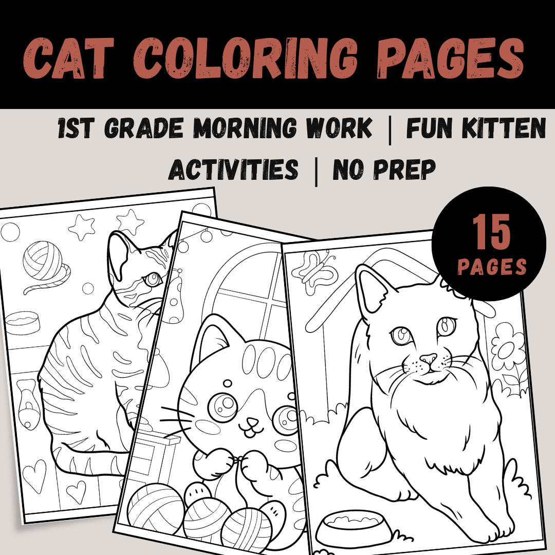 Cat Coloring Pages | 1st Grade Morning Work | Fun Kitten Activities | No Prep
