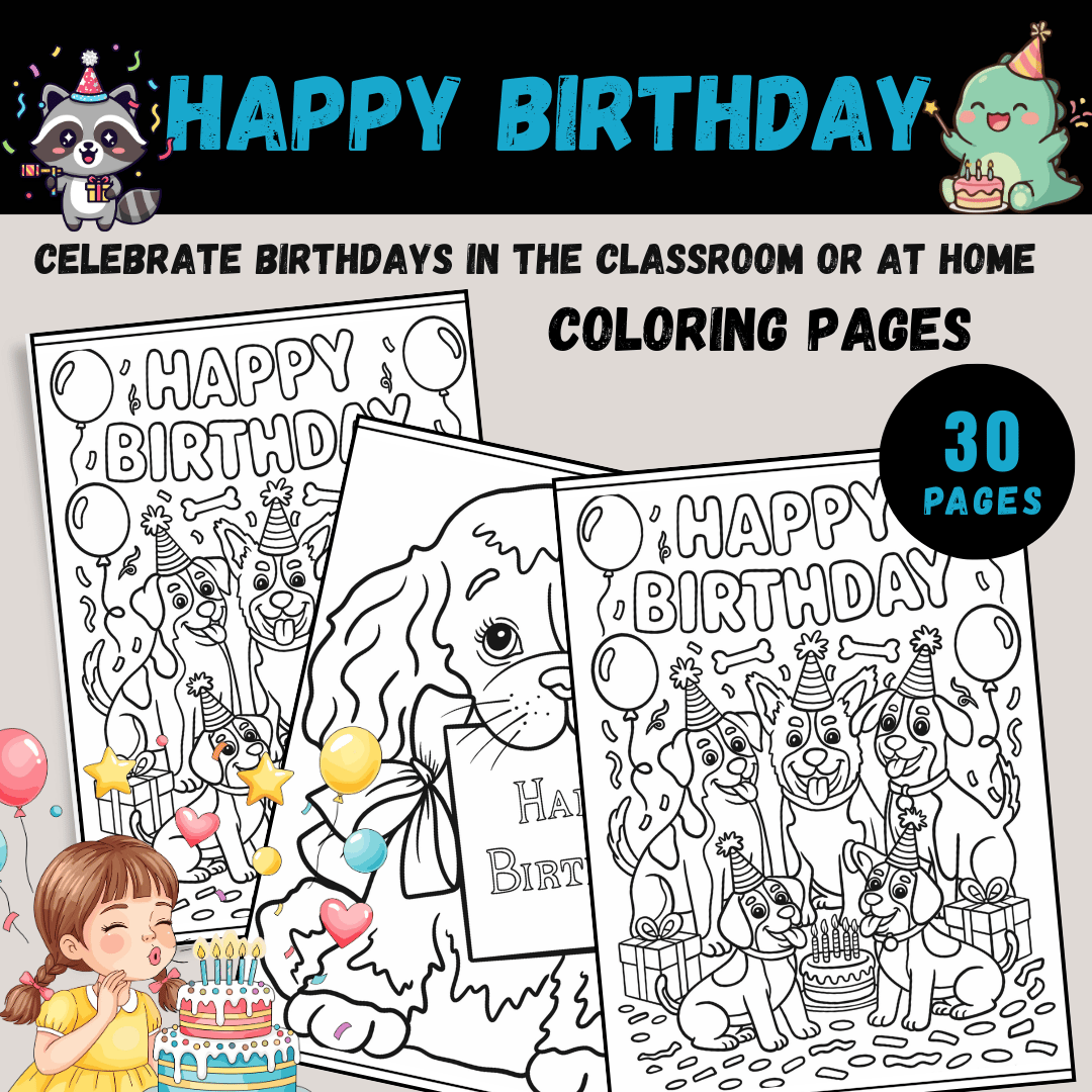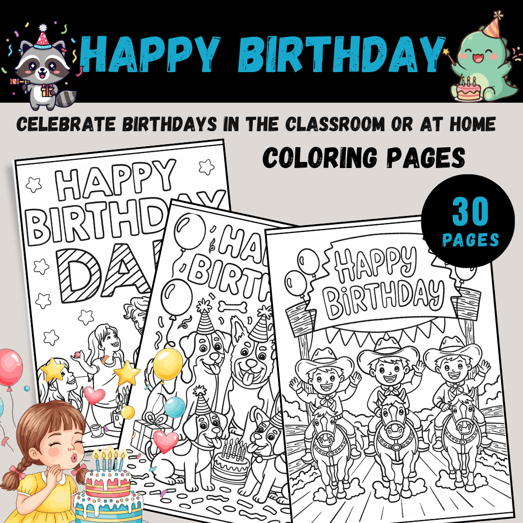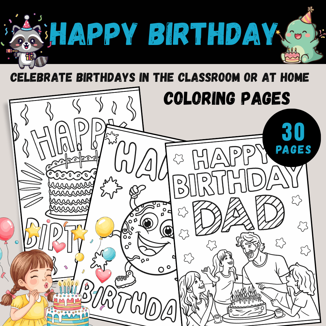 Happy Birthday Coloring Pages for Preschool, Kindergarten, Creative, First Grade