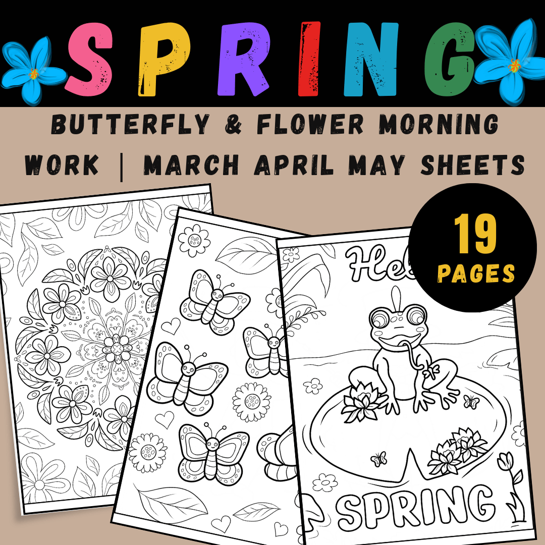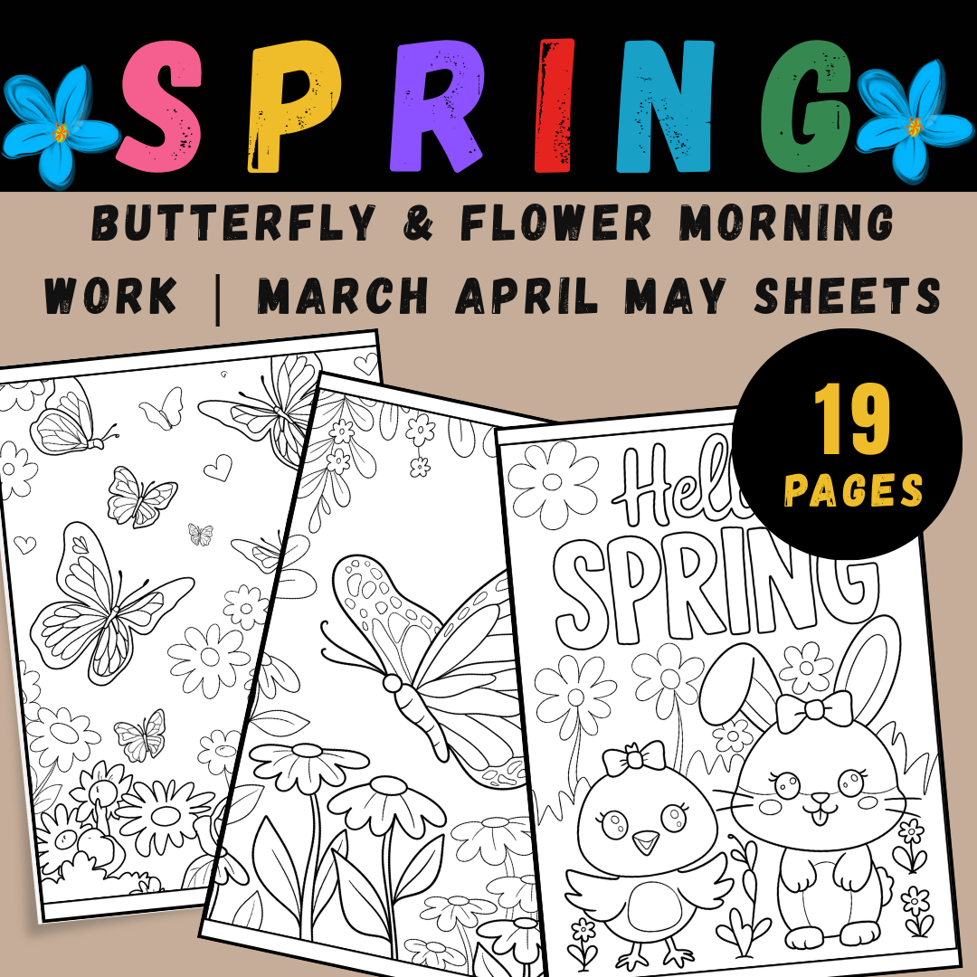Spring Coloring Pages | Butterfly & Flower Morning Work | March April May Sheets