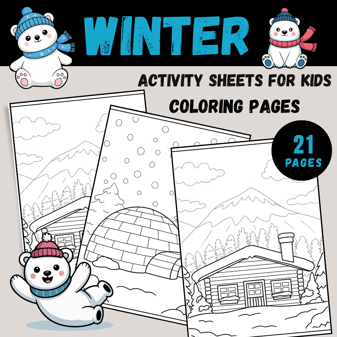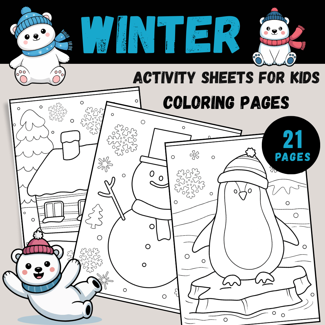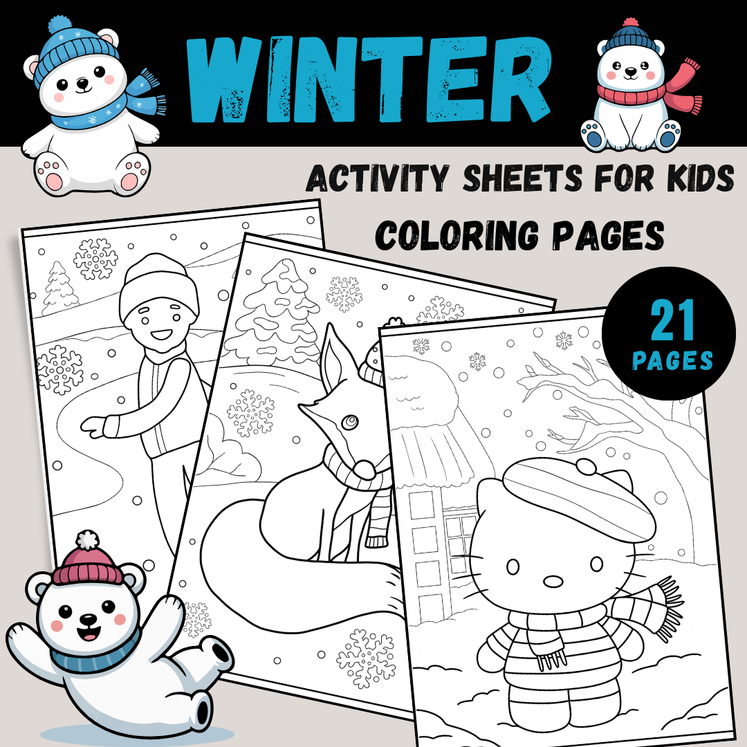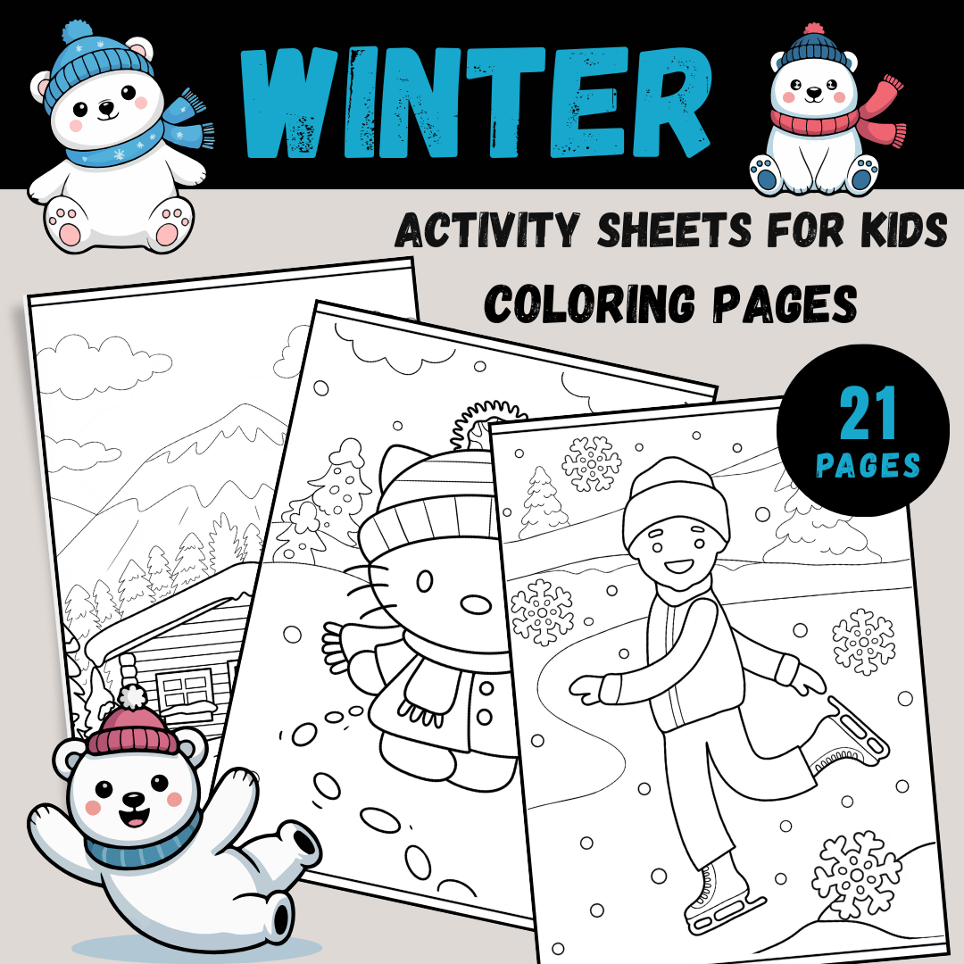 - 21 High-Quality Coloring Pages: Featuring seasonal themes such as "December," winter landscapes, and festive designs.
