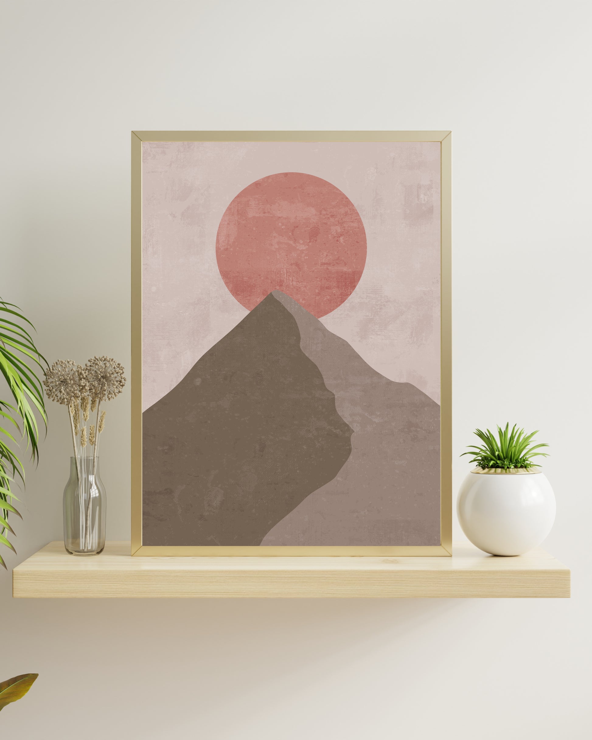 Boho Wall Art, Abstract Mountain Print, Mid Century Modern Sun Poster, Terracotta Decor, Japandi Style, Printable Wall Art, Digital Download